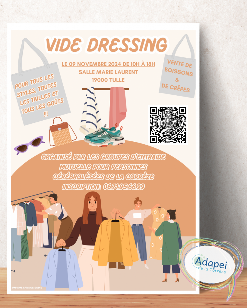Le 9 novembre, à la salle Marie Laurent, de 10h à 18h, aura lieu un vide-dressing organisé par les Groupes d’Entraide Mutuelle (GEM) Hippocampe et Avancer Ensemble, pour les personnes cérébrolésées de la Corrèze !