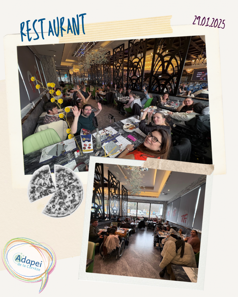 Quoi de mieux qu’un bon repas pour passer du temps ensemble ? Mercredi 29 janvier, les résidents du Foyer d’Accueil Médicalisé, accompagnés des professionnels, ont eu la chance de partager un délicieux moment au restaurant ! Entre rires, bons repas et partage, cette sortie fut une belle occasion de renforcer les liens et de vivre ensemble un moment de convivialité.