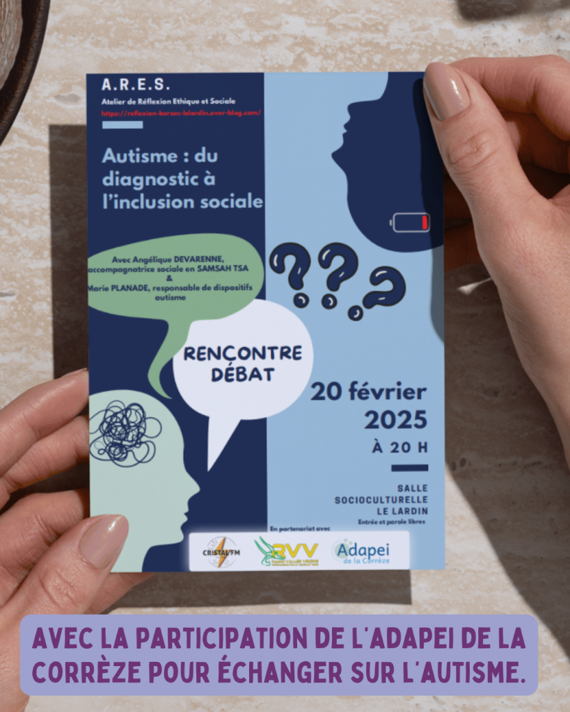 L’Adapei de la Corrèze a le plaisir d’intervenir lors d’une rencontre organisée par l’ARES pour échanger avec le grand public sur l’autisme.