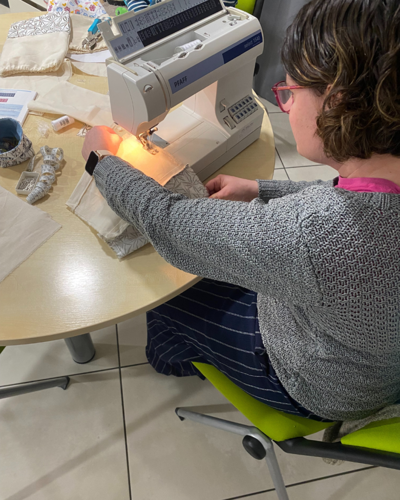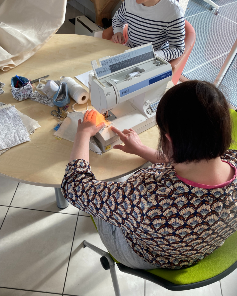 Et ce n’est qu’un début ! L’équipe éducative lance un appel aux dons de tissu pour de futurs projets : création de pochettes weekend et range-cartes.