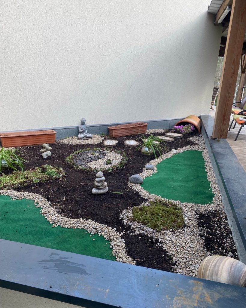 Le projet ne s’arrête pas là : une fontaine viendra bientôt compléter ce jardin, ajoutant encore plus de sérénité à cet espace (prochain achat à venir !).