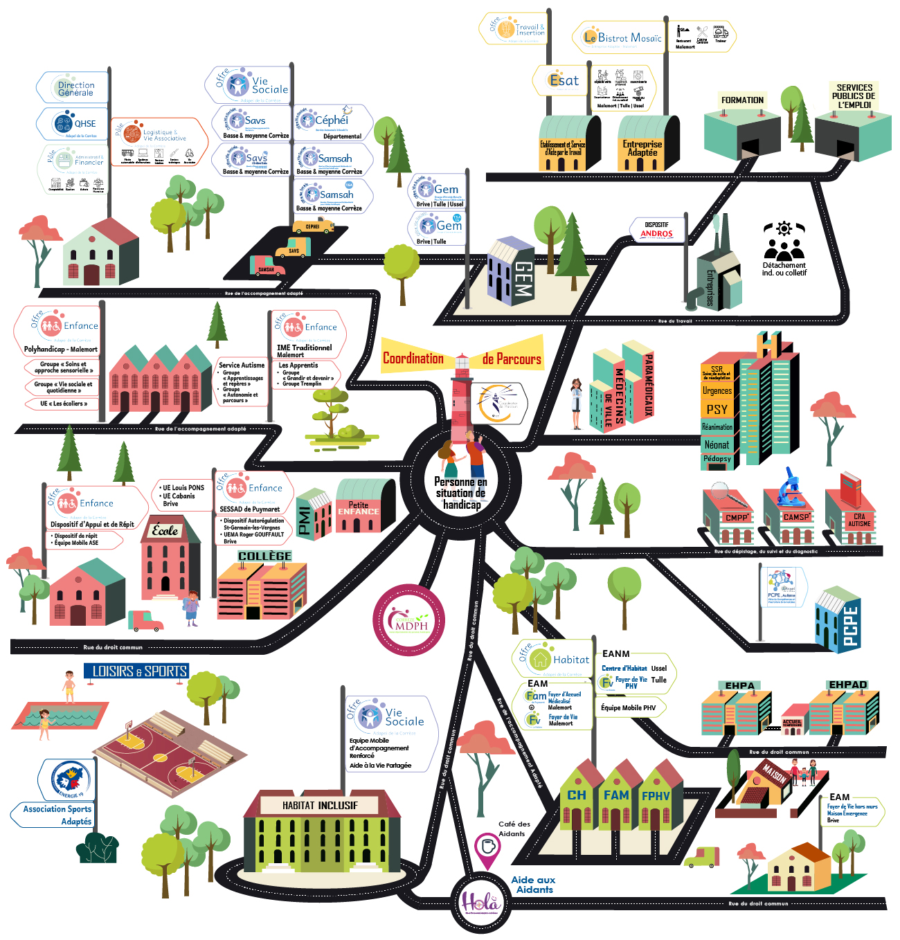 Un parcours s’entend comme une prise en charge globale, structurée et continue, des personnes que nous accompagnons, au plus près de leurs besoins, de leurs attentes et de leurs projets de vie.